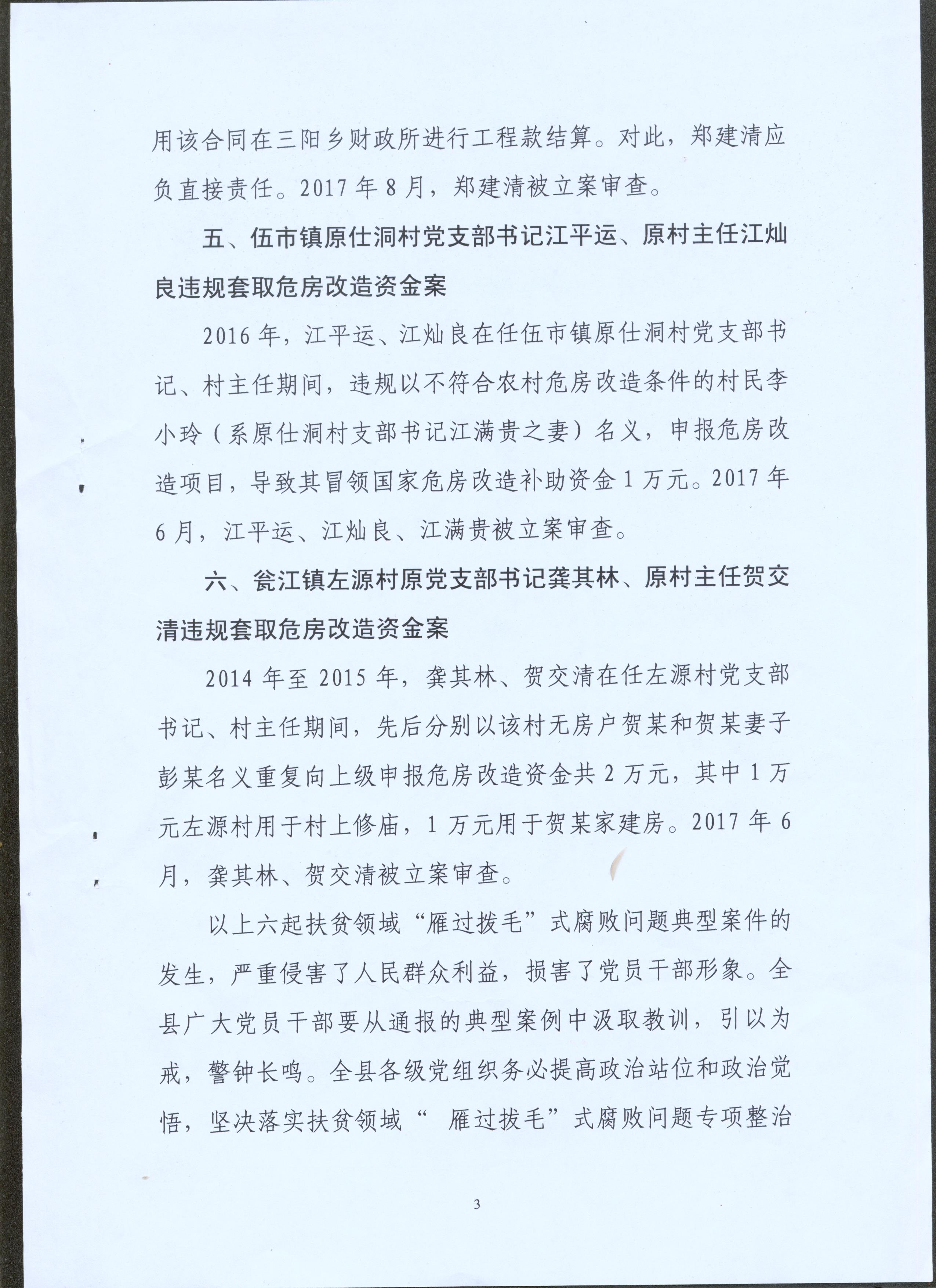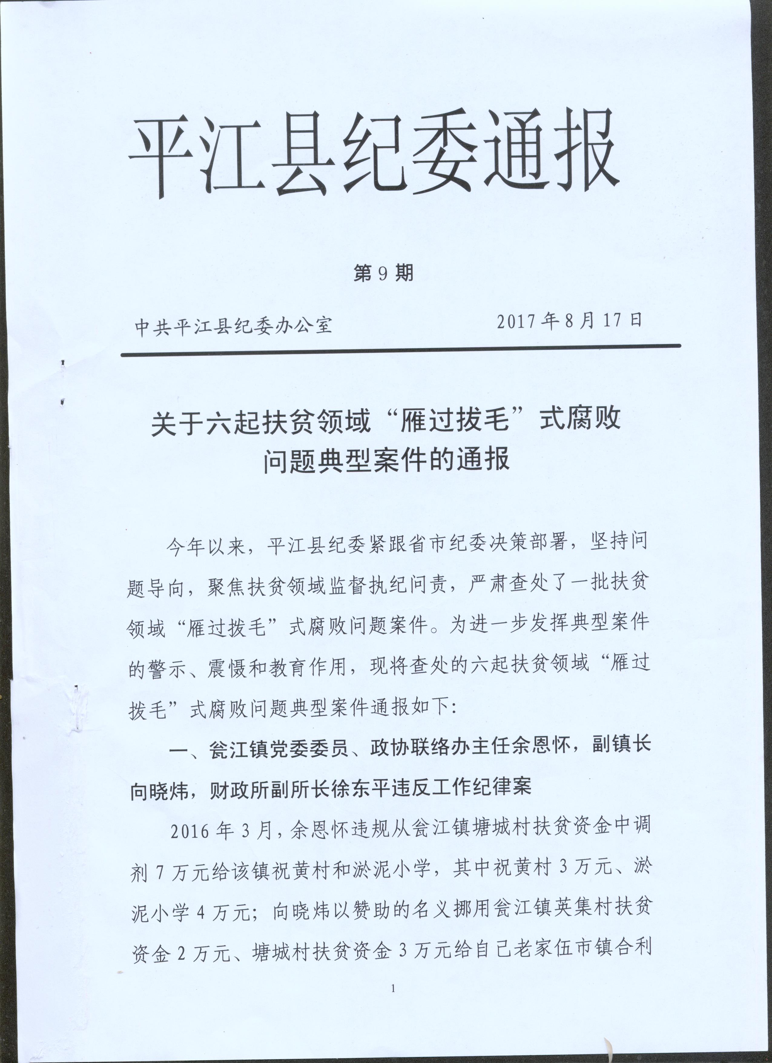 平江县纪委通报第9期:关于六起扶贫领域“雁过拔毛”式腐败问题典型案件的通报