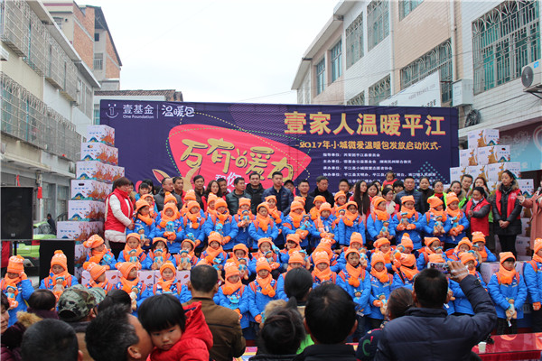 12月23日上午,“壹基金温暖平江”暨平江县小城微爱志愿者协会温暖包发放仪式在南江镇隆情举行。
