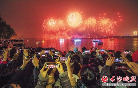 2018年首场橘洲焰火吸引超10万人欣赏