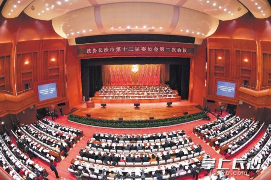 政协长沙市第十二届委员会第二次会议昨日在长沙人民会堂开幕。长沙晚报记者周柏平摄